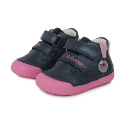 Nyuszis D.D.Step bőrcipő sötétkék színben pink talppal