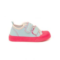 2 tépőzáras fehér, kék színű vászoncipő pink talppal, fényre változó