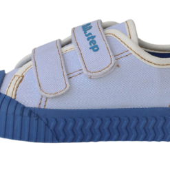 2 tépőzáras fehér, kék színű vászoncipő kék talppal, fényre változó