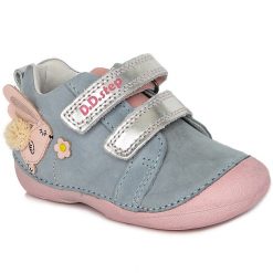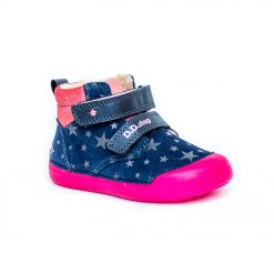 2 tépőzáras kék színű D.D. Step béléses lány cipő floureszkáló pink talppal