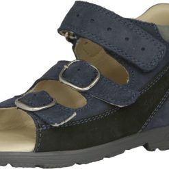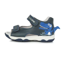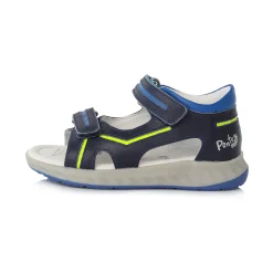 Kékszínű ,2 tépőzáras szandál oldalán világoszöld díszítéssel