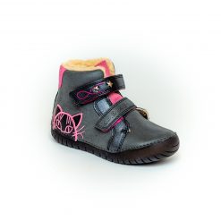 Két tépőzáras fekete rózsaszín D.D. Step béléses lány cipő magasított szárral, cica díszítéssel