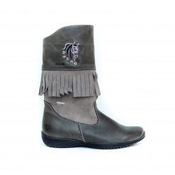 Szamos rózsaszínű, magasított szárú supinált cipő, lovacskás díszítéssel