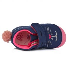 2 tépőzáras rószaszínű, kék színű, nyuszis mintával rugalmas talpú vászoncipő beépített orrvédővel. Elsősorban normál és széles lábfejre
