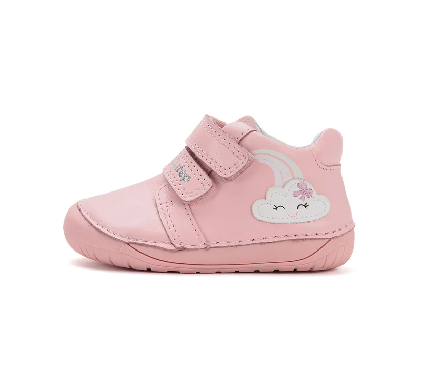 2 tépőzáras fényre változó, világoskék színű bőrcipő. Oldalán fényre színváltós felhő motívummal. Elsősorban normál és széles lábfejre