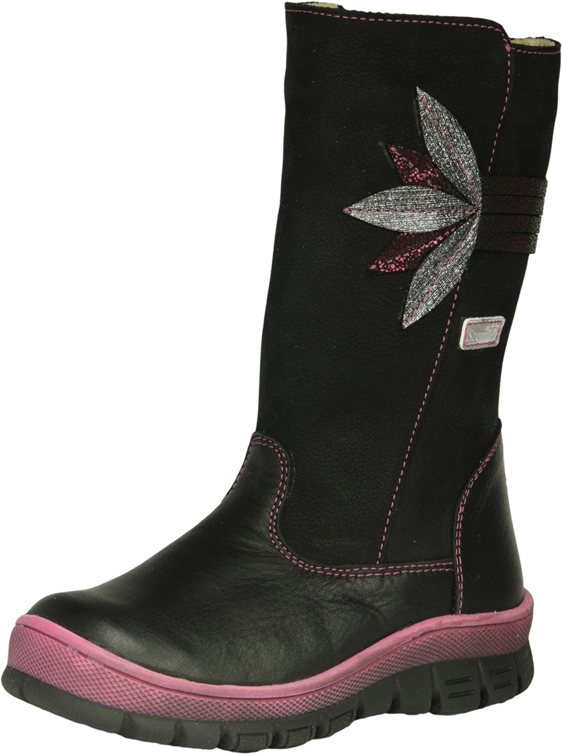 Szamos, cipzáras, lány csizma csillogó, ezüstös levél dísszel.