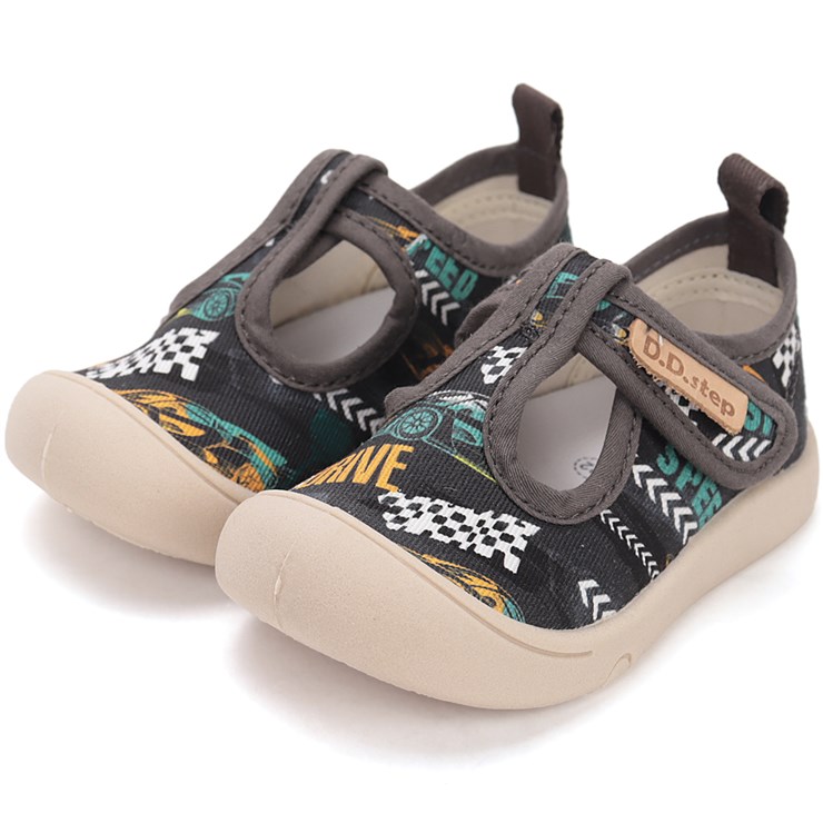 Szandálcipő fazon, nyomott versenyautó díszítéssel.