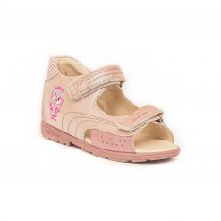 Szamos rózsaszínű, magasított szárú supinált cipő, lovacskás díszítéssel