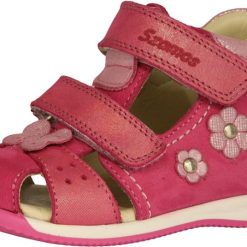 Ezüst és rózsaszínű, szandál szívecskés és virágos díszítéssel