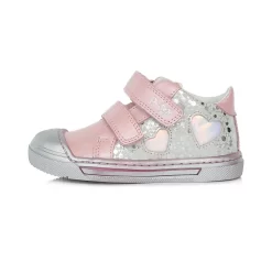 Ponte20 ezüst és rózsaszínű erősített orrvédős lány cipő oldalán szíves díszítéssel